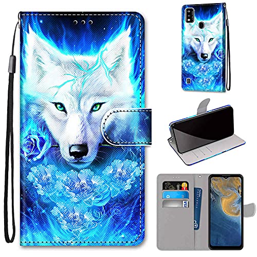 JRIANY Cover per ZTE Blade A51, Cover a Libro Blade A51, [Antiurto Portafoglio] [Supporto Stand] [Carta Fessura] Simpatico Motivo Animale Flip Custodia in per ZTE A51, Lupo A