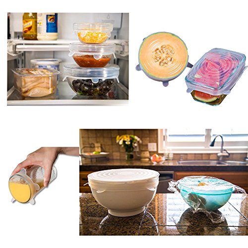 【Funzionalità】: le coperture elastiche in silicone aiutano a mantenere freschi frutta, verdura, bevande e altri alimenti, la copertura in silicone può essere utilizzata per coprire e riscaldare alimenti in un forno o microonde per evitare schizzi piuttosto che conservare gli alimenti nel frigorifero per prevenire la diffusione di odori.