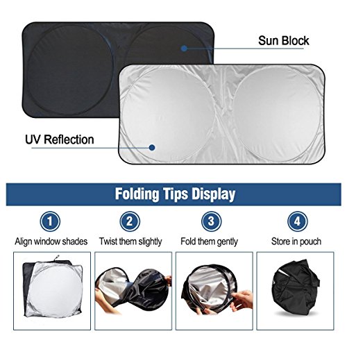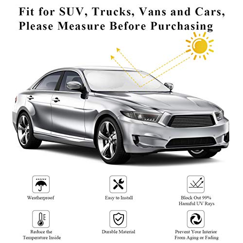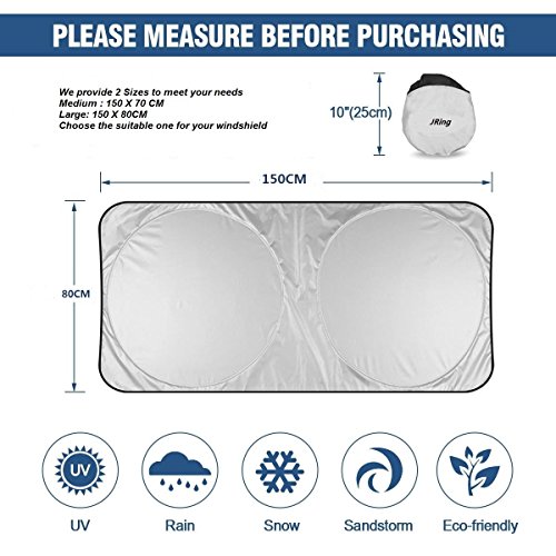 Fit universale Adatta per parabrezza (THE SUNSHADE Dimensione: L = 150cm, W = 80cm) La dimensione è misurata manualmente con errore di 1-2cm, maestare il tuo parabrezza innanzitutto.
