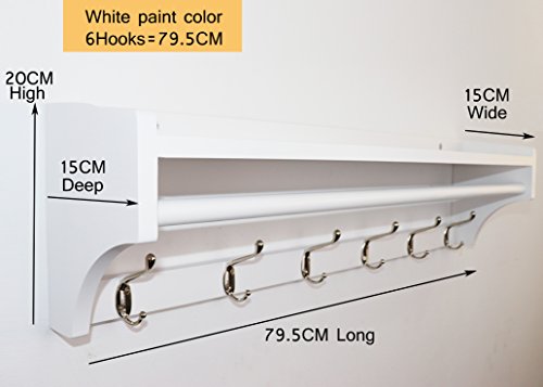 JRLinco Appendiabiti da Parete in Legno massello, Moderno Appendiabiti,6 Ganci Mensola a Muro,Espositore Appendiabiti,Camera da Letto e Bagno Decorazione, Espositore per Camera (6 Ganci=79.5CM)