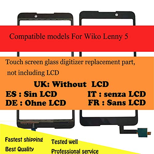 JRLinco per Wiko Lenny 5 Schermo di Vetro, Parte di Ricambio Display Touchscreen(Senza LCD)per Wiko Lenny 5 Nero+Attrezzi & Bi-Adesivo + Pacchetto Pulizia con
