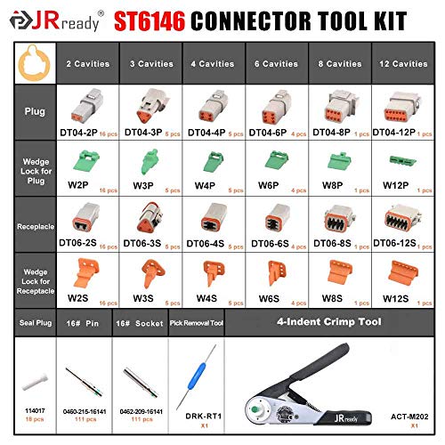 JRready ST6146 DT Kit connettore 2-12 pin grigio 368 pezzi connettore Deutsch Solid Terminal Contact/4 rientri 8 Impression Deutsch strumento di crimpatura ACT-M202
