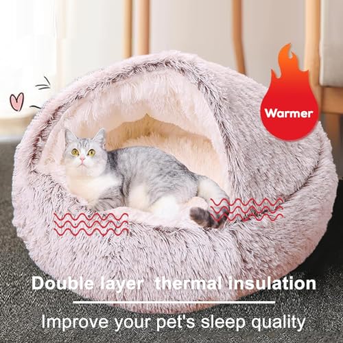 JRUI Cuccia Cane Gatto Interno Morbida, Tondo Cuscino Cane e Lavabile, Cuccia Per Cani Da Interno, Cuccia Gatto Chiusa, Letto Pelosa Antistress per Animale Domestico, Diametro di 70 cm Cachi