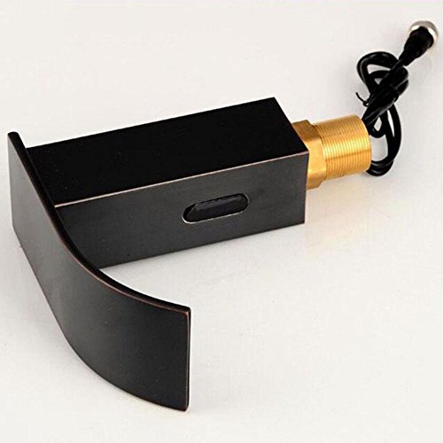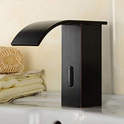 JRUIA Rubinetto automatico a infrarossi con sensore automatico per acqua fredda, a cascata a infrarossi, rubinetto per lavabo da bagno, rubinetto alto in ottone nero olio bronzo (H14,5 cm)