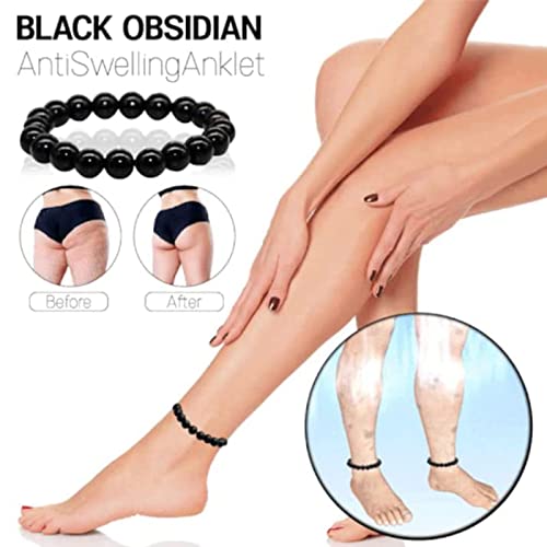 JRYX Anti Swelling Black Obsidian Anklet, Anti Swelling Black Obsidian Slimming Anklet, Magnetic Therapy Bracelet, Natural Bracelet, Lymphatic Drainage Obsidian Bracelet Anklet