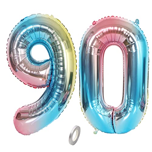 Jrzyhi palloncini 90° compleanno arcobaleno gigantesco Foil Palloncino Numero 90 Elio GRAN NUMERO XXL numero 90 di buon compleanno 90 anni Giant Numero Palloncini per i Birthday Decoration 32 pollici
