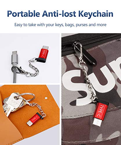 JSAUX Adattatore USB C a Micro USB, [4 Pezzi] Convertitore USB Tipo C con Portachiavi Resistenza 56K Compatibile con Samsung Galaxy S10 S9 S8 Note 10 9 8/A3 A5, Huawei P9/P10, Xperia XZ, LG (Rosso)