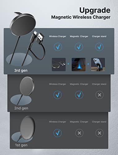 JSAUX Caricabatterie wireless magnetico compatibile con caricabatterie/ 14/14 Plus/14 Pro/14 Pro Max/13/13 Pro/13 Pro Max/ 12, caricatore Mag, pad di ricarica magnetico, grigio