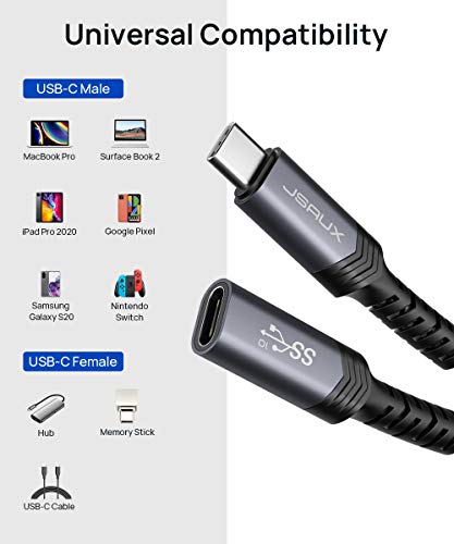 JSAUX Cavo di prolunga USB C (6FT/10Gbps) USB C 3.1 Gen 2 cavo di prolunga USB C maschio a femmina, supporto 4K a 60Hz/100W ricarica rapida USB C Extender per MacBook/iPad Pro, Magsafe e altro ancora