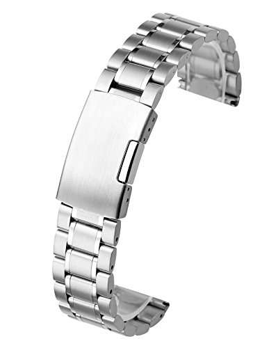 Jsdde, cinturino in solido acciaio inossidabile, a maglia, cinturino di ricambio per orologio, con fibbia a depolyante, cinturino con distribuzione a 3 file, cinturino in metallo