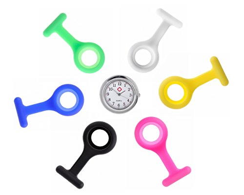 JSDDE nove Orologio per infermiere o medico, in silicone, con spilla, batteria + 6 custodie incluse