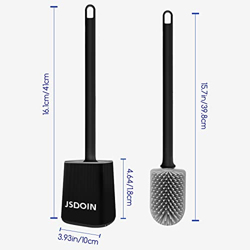 Jsdoin Scopino WC Silicone Bagno Nero, Scopino per WC in Morbido con Porta Spazzolone Scopino Asciugatura Rapida Spazzola da Toilette(Nero)