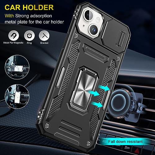 JSENMlN Custodia iPhone 15,Antiurto Cover Scorrevole Protezione Fotocamera Custodia per iPhone 15 (Nero)