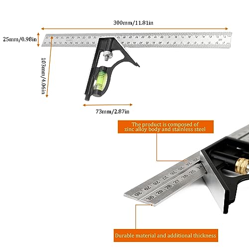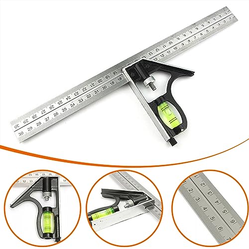 JSKWIKE 1 PCS 300mm Righello Combinato Squadra Combinata Regolabile con livella a Bolla e Strumento di marcatura Righello Universale 45/90 Grado per Falegname misurare et segnare