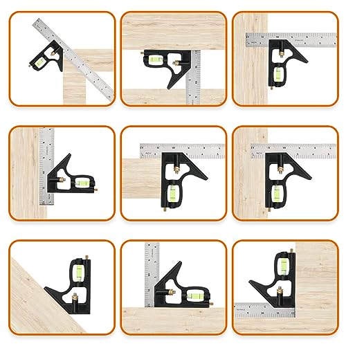 【Design Regolabile】Composto da un righello in acciaio da 300 mm e una testa quadrata regolabile, il righello per la lavorazione del legno offre un angolo standard di 90 gradi e un angolo di 45 gradi. Grazie alle viti di bloccaggio in ottone, è possibile regolare facilmente l'angolazione, garantendo una scorrevolezza fluida e risparmiando tempo durante la misurazione. Inoltre, la presa ergonomica evita la pressione sulle mani anche durante un uso prolungato.