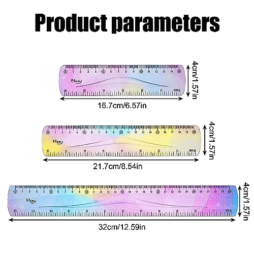 JSKWIKE 3 Pcs Righello flessibile righelli flessibili in plastica morbida righello trasparente colorato infrangibile righello metrico dritto pieghevole righello piatto colorato