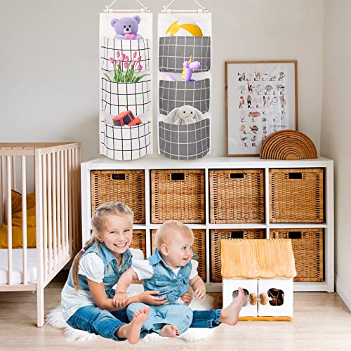 JSMTKJ 3Pcs Portaoggetti da Parete con Tasche, Borsa Portaoggetti da Parete Lino e Cotone Appendere Sacca Tasche Portaoggetti da Parete per Camera Da Letto e Bagno