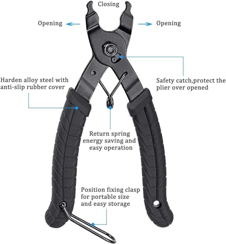【Kit di strumenti per la riparazione del valore eccessivo】: tre strumenti in un kit: pinze per maglie della bicicletta, tagliacatena della bicicletta e pinza per il controllo della catena della bicicletta. Tutti sono realizzati in acciaio di alta qualità e hanno un rivestimento antiruggine. Perfetto per tutti i lavori di riparazione della catena della bicicletta.