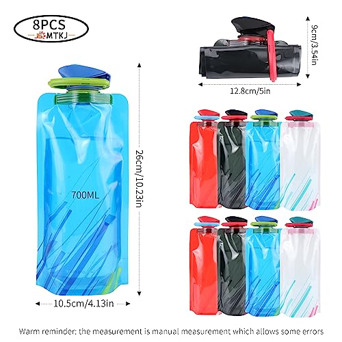 JSMTKJ Bottiglie 700ML di acqua Pieghevole Bottiglia, 8 piezas Bottiglia D'acqua Pieghevole, Riutilizzabile Borraccia Flessibile per Escursionismo, Adventures, Viaggi