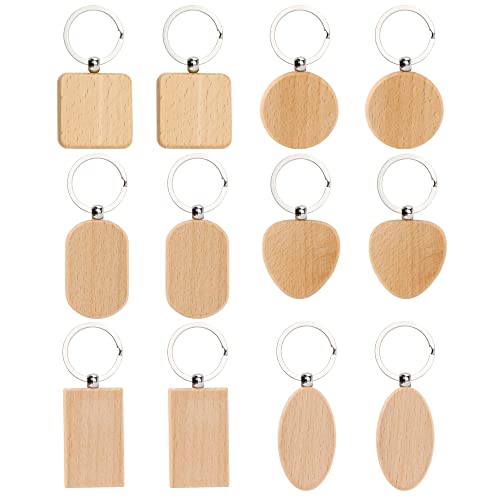 【6 forme diverse】 Ti offriamo 12 pezzi di portachiavi in legno in 6 forme diverse e ogni forma ha 2 pezzi. La superficie del portachiavi è vuota, quindi puoi dipingere o scrivere qualsiasi cosa su di esso per progettare il tuo portachiavi.