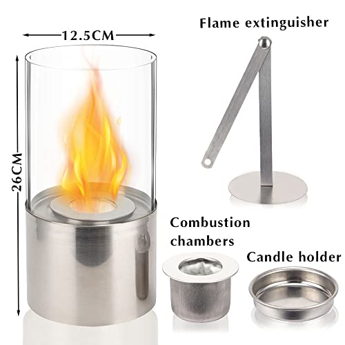 JSMY Camino da tavolo in argento con tubo di vetro Bioetanolo Camino portatile all'aperto ciotola del fuoco per la casa cucina soggiorno giardino balcone