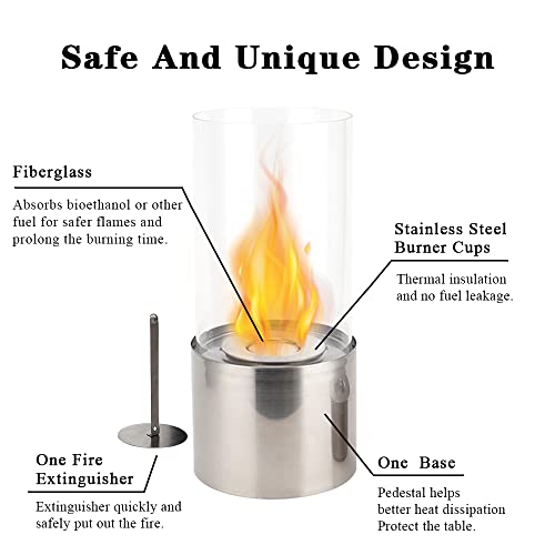 【Design senza tempo】- Con un design moderno e senza tempo della base in metallo argentato e una vista a 360° delle fiamme danzanti dietro il tubo di vetro trasparente e rimovibile resistente alle alte temperature, questo caminetto da tavolo è un elegante pezzo di conversazione! Sarebbe anche un regalo fantastico per i vostri amici o parenti amanti del design d'interni!