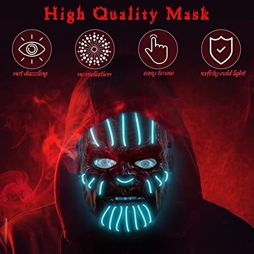 【4 modalità】ci sono 4 modalità di controllo su questa maschera neon led: luce fissa, flash lento, flash veloce, spento. Richiede due batterie AA (non incluse).