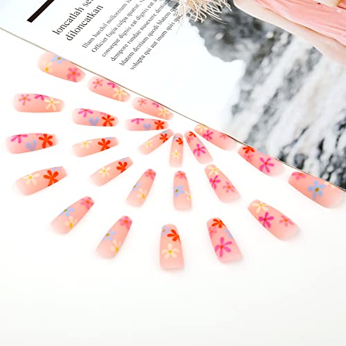 JSRQT 24 Pezzi Mandorla Unghie Finte Corte,Margherita Colorata Premere Pre-incollato Unghie Finte Acriliche, Artificiali Tip Unghie con Strass Adesivo per Donna e Ragazze Adolescenti