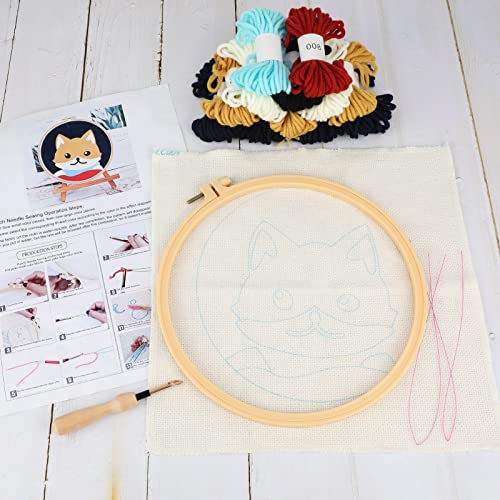 JSRQT Kit di Ricamo per Aghi da Punzonatura con Penna a Punzone,Punch Needle Starter Kit,Strumento di Ricamo per Adulti Principianti (Cane)