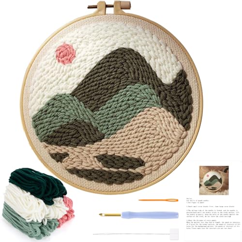 JSRQT Kit per Ricamo con Ago da Punzonatura, Montagna Strumento di Ricamo per Principianti, Punch Needle Starter Kit con Penna a Punzone Cerchi da Ricamo, Ricamo Starter Kit