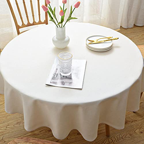 Jstoo Tovaglia Tavolo Biancheria in Misto Solido in Cotone Impermeabile Grande Tavola Rotonda Tavolo Rotondo Tovaglia Tavola Semplice Tavolino-Azimose_Rotondo 180Cm [Adatto Entro 140Cm Diametro]