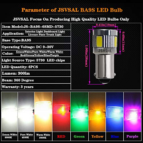 JSVSAL - Confezione da 4 lampadine LED BA9 BA9S 53 57 1895 64111 estremamente luminose 5730 6 SMD (solo per uso interno) (bianco puro (4500 K))