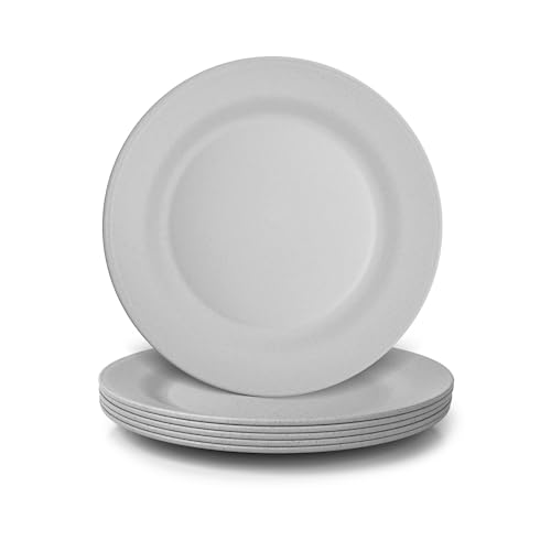 JSYMJSY 6 Pezzi 28cm Piatti Piani Riutilizzabili in Plastica, Leggeri per Campeggio, Feste, Adatti Al Microonde, Lavabili in Lavastoviglie, Senza Bpa (Grigio)