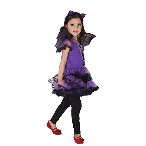 JT-Amigo Costume da Vampira Pipistrello, Bambina e Ragazza, Travestimenti Halloween Carnevale, 6-7 Anni