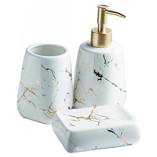 JTBDWOSK Set Bagno in Ceramica, Set di Accessori Bagno Moderni di Lusso, Motivi in Marmo, Ceramica, Set Bagno, Accessori per La Casa, Appartamento, Dormitorio,Bianca