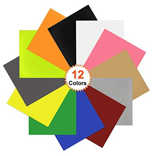 JTDEAL Vinile termotrasferibile per magliette, fogli in vinile poliuretano da stampare per trasferire design su tessuto tramite stiratura, 12 colori diversi fra cui nero, bianco e oro, dimensioni 30,5 x 25 cm, ideali per decorazioni fai da te di magliette, come regalo natalizio, confezione da 12 fogli