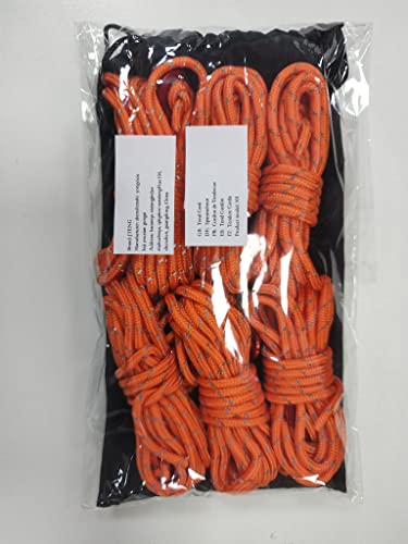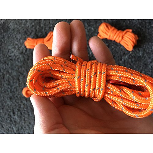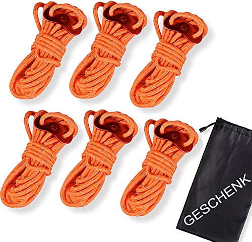JTENG Corda di tensione riflettente, con tenditore, 13ft/4 m, con tenditore in lega di alluminio, Φ 4 mm, corda di nylon luminosa, Guy, per tenda da sole (6 pezzi corda arancione)