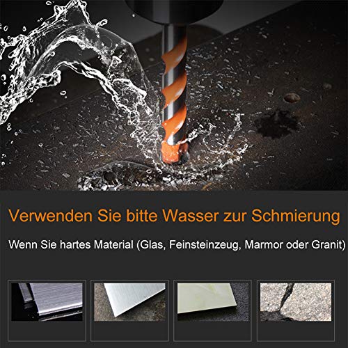 JTENG - Set di 6 punte per trapano per vetro 6/6/8/10/12 triangolo in lega per piastrelle, cemento, mattoni, vetro, plastica e legno