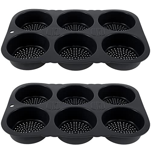 JTNero 2 stampi da forno per hamburger Buns in silicone, rotondi, 6 cavità, per muffin e uovo, antiaderente, in silicone, per hamburger, pane, muffin, torte al cioccolato, torte