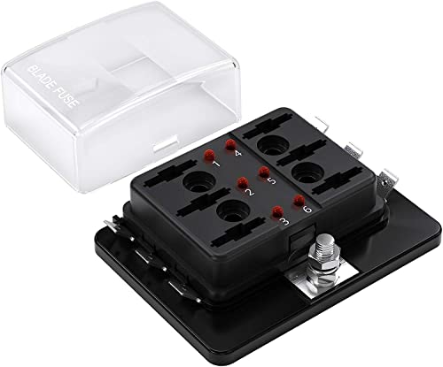 Jtron 6Way Blade Fuse Box Holder DC12~32V con kit di avvertimento a LED per Automotive Car Boat Marine Trike