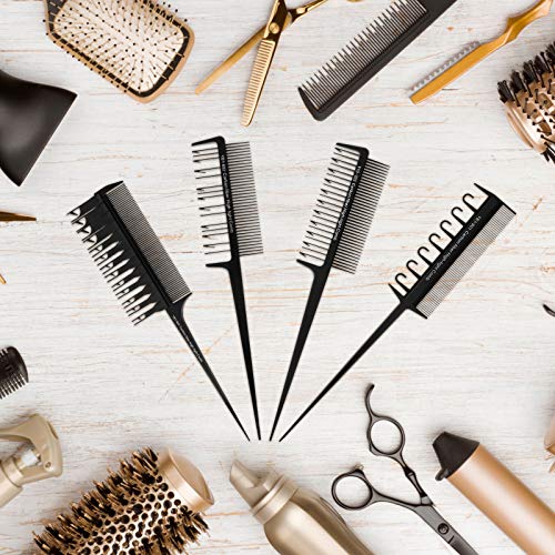 Jubaopen 4pcs Pettine in Coda Pettine Professionali per Parrucchiere Antistatico Pettine per Tessitura a Denti Larghi in Plastica di Carbonio Pettine per Evidenziare Barbiere Acconciature Salone Casa