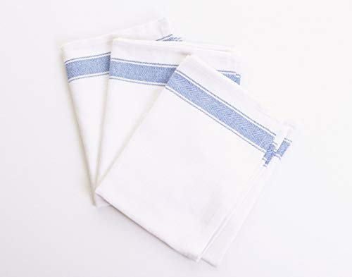 Jubert Linen Company - Strofinacci da Cucina, Misura Grande, Design a Lisca di Pesce, 3 Pezzi, in Cotone, Colore: Blu o Verde Blu