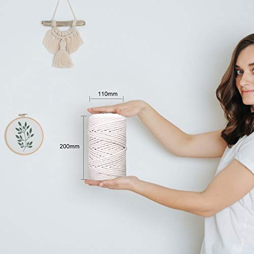 【DIY ARTIGIANATO】 Corda di cotone naturale abbastanza lunga da permetterti di completare tutti i tuoi mestieri fai-da-te come legare migliaia di nodi, realizzare un ampio progetto macrame come una tenda, una tovaglia e così via.