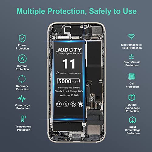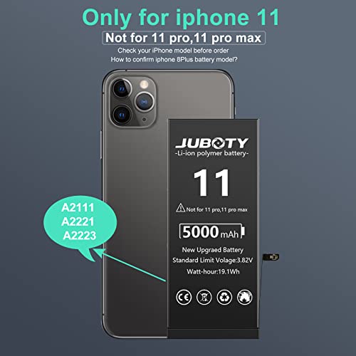 JUBOTY - Batteria agli ioni di litio per iPhone 11 5000 mAh, ricambio per iPhone 11 Model A2111 A2221 A2223 con kit di riparazione professionale completo
