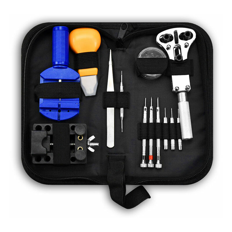 NUEVO 2022 - Este kit de herramientas de reparación de relojes de alta calidad es adecuado para uso profesional y general, puede satisfacer la mayoría de las necesidades de reparación de relojes. 【Amplia aplicabilidad】El kit de reparación de relojes profesional es muy adecuado para reparar y ajustar el reloj, por ej. Como quitar la correa del reloj, abrir la tapa trasera del reloj, reemplazar la batería del reloj y reemplazar el reloj. Correa del reloj, ajuste de la correa del reloj, limpieza del interior del reloj, mantenimiento del interior del reloj, etc. 【Portátil y liviano】 El estuche del reloj del kit de reparación viene con un estuche de nailon negro con cremallera para un almacenamiento conveniente, fácil cuidado y fácil trabajo realizado en cualquier momento y en cualquier lugar. De excelente calidad, la herramienta de relojero es muy ligera y portátil, muy fácil de usar Cantidad: Juego de 30
