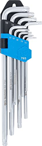 Juego de llaves acodadas | extra largas | con perfil en T (para Torx) T10 - T50 | 9 piezas