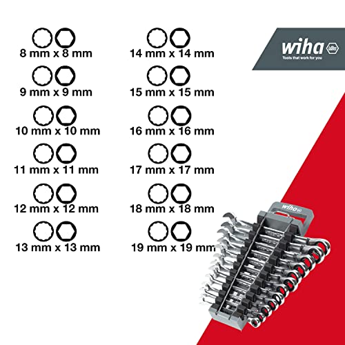 Wiha Juego de llaves de boca con carraca angular 13 unid. conmutable con soporte (44661)
