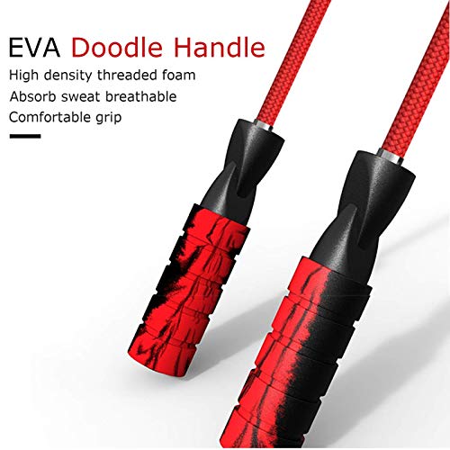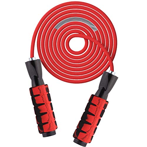 Jueshanzj - Corda per saltare con cuscinetti a sfera, in cotone con manici in memory foam, ZTJSHW0033-1, Rosso, 9 Feet