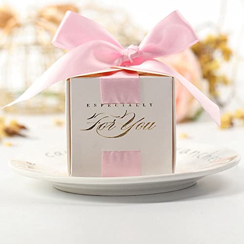 JUEXIN Confezione Regalo in Cartone, Confezione Regalo Souvenir con scatole di Caramelle a Nastro per Feste di Compleanno per Baby Shower(Pink)