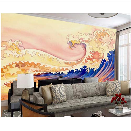 Jukunlun Murale 3D Carta Da Parati Di Panno Di Seta Tridimensionale Di Alta Moda Carta Da Parati Dorata Di Stile Giapponese Delle Montagne E Delle Onde 3D Di Stile-200X140Cm